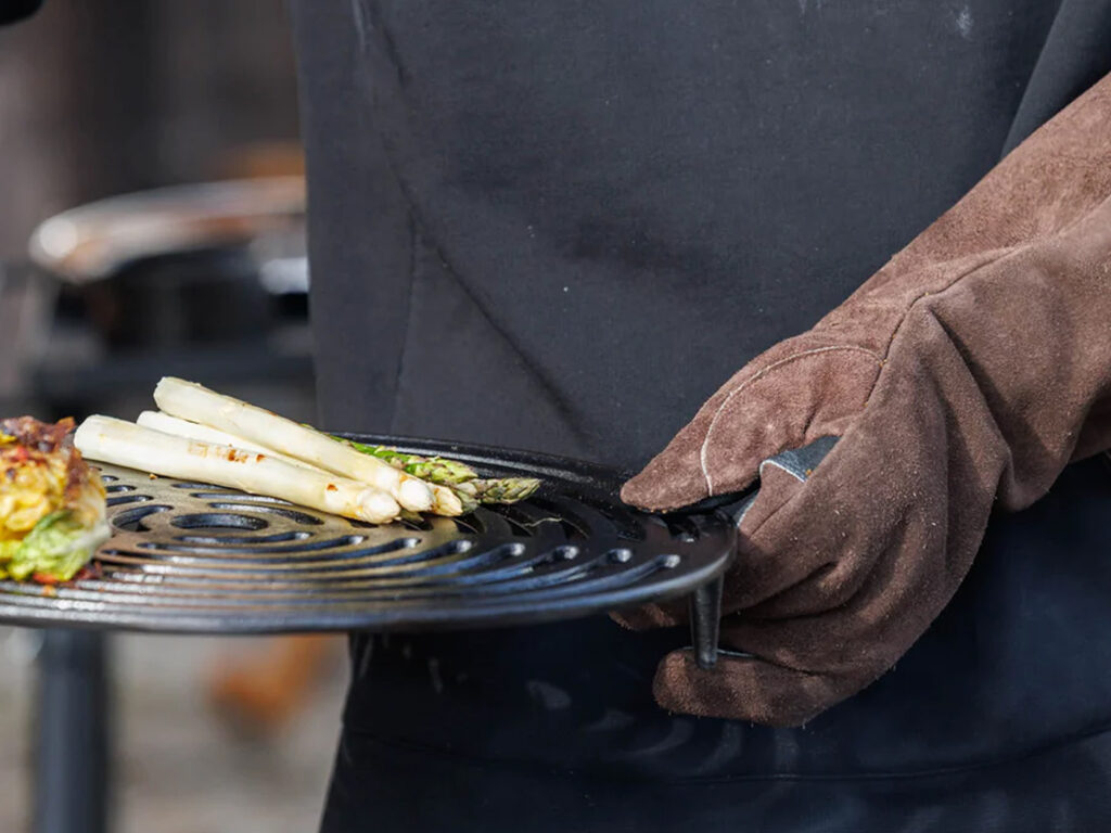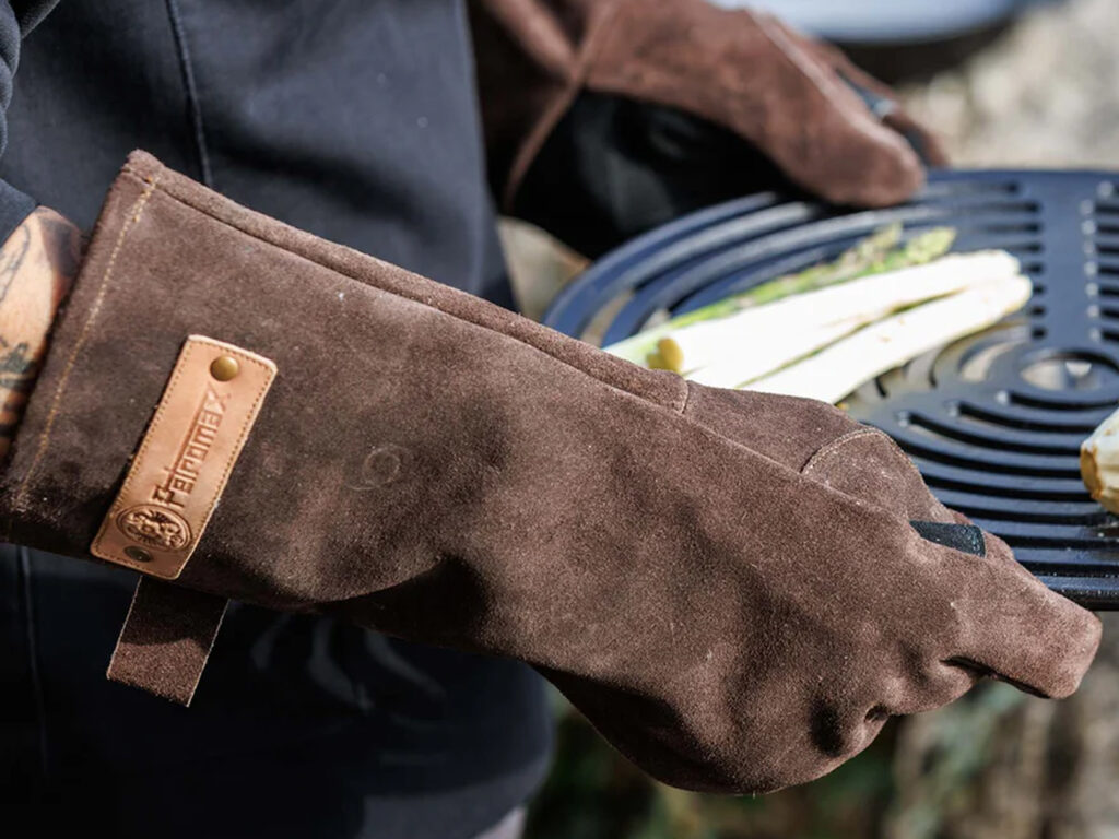 Verover je buitenkookavontuur met vertrouwen en bescherming dankzij de Barbecue Handschoenen XL. Deze handschoenen zijn speciaal ontwikkeld om het hanteren van gietijzeren Dutch Oven en smeedijzeren pannen te vergemakkelijken en bieden betrouwbare bescherming rond de barbecue en vuurplaats. De donkerbruine handschoenen, gemaakt van hoge kwaliteit suèdeleer, zijn voorzien van een extra Kevlar®-laag op de handpalmen die bestand is tegen temperaturen tot 250°C. Maar zelfs bij deze hitte staat comfort voorop dankzij het zachte fleece dat in de handschoenen is verwerkt, dit zorgt voor een comfortabele pasvorm.