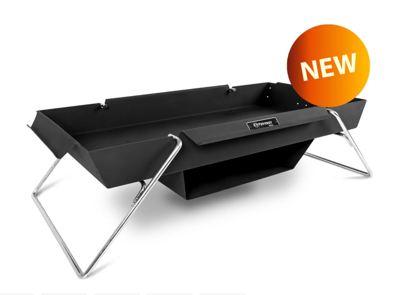 De vuurtrog is gemaakt van 2,5 mm dik staal met een omlopende rand. Wanneer je de oven voor het eerst in elkaar zet, rust je hem uit met de baklade, en dan kun je hem in de auto of busje vervoeren naar waar je maar wilt om je buitenavontuur te beginnen.