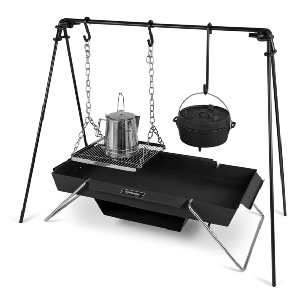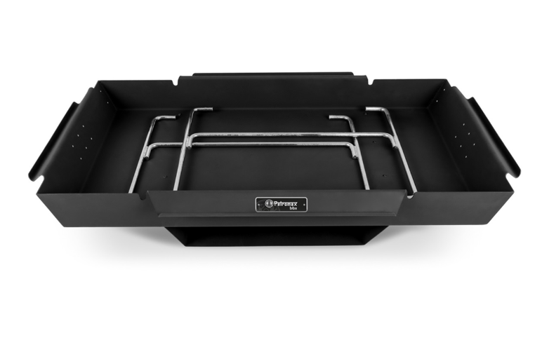 De trog kan tot 100 kg kookgerei dragen. De vuurtrog helpt je bij het serveren van meerdere gerechten tegelijk, want in de bijbehorende baklade gratineer je een aardappelschotel, laat je sappige steaks nagaren of bewaar je een boerenontbijt warm.
