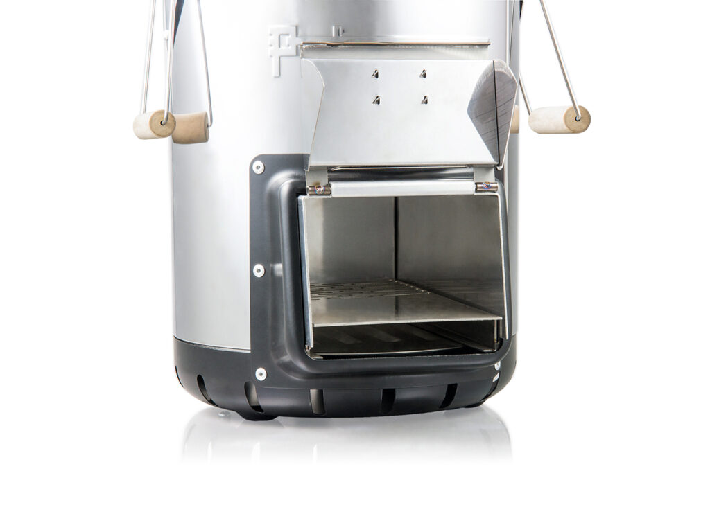 De Petromax Rocket Stove combineert effectief het schoorsteeneffect en het houtketelprincipe, wat zorgt voor een optimale luchttoevoer. Hierdoor ontstaat een uiterst efficiënte verbranding van biomassa zoals hout. Het L-vormige ontwerp van de brandstofsteun, verbrandingskamer en schoorsteenopening is hiervoor cruciaal.