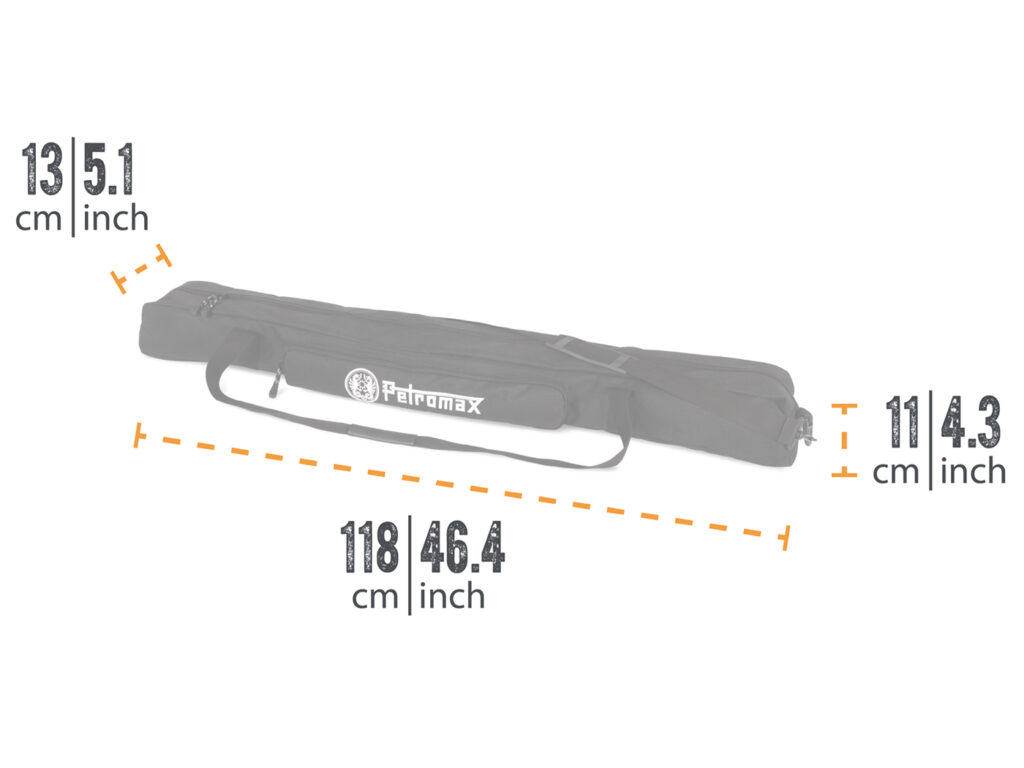 Petromax Transporttas voor FRK1 Transport- en opbergtas voor de vuurbrug frk1 – extra opbergruimte voor accessoires (ketting en haken) in de zakken – schouder riem – vuurbrug wordt vastgezet met klittenband aan de binnenkant – het grillrooster past niet in de tas