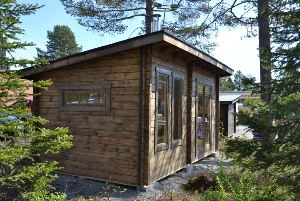 Middelgroot Scandinavisch tuinhuis met 2 aparte ruimtes. De opstelling wijkt af van de Helmer‑serie en zorgt voor een rustige uitstraling en aangename lichtinval. Zie foto’s, tekeningen en specificaties voor indeling en afmetingen.