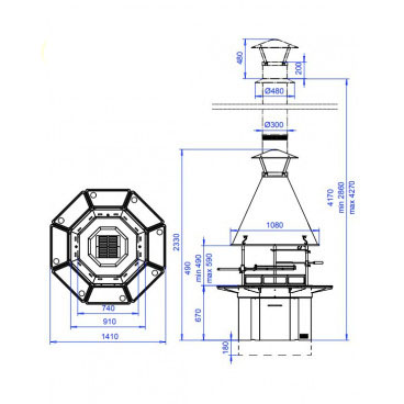- Schoorsteenset; (twee Schoorsteenpijpen á 100 cm en 1 x 50 cm, afdichtplaat voor t.b.v. dakdoorvoer door punt dak (hellend dak optioneel)